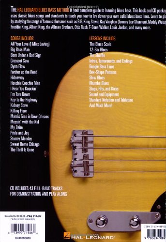 DescriptionHal Leonard Bass Method: Blues Bass - A Guide To The Essential Styles And Techniques A complete guide to mastering the techniques and stylistic details of the Blues Bass Guitar, using classic blues songs and standards to get you playing in the right way, straight away.Rang parmi les ventes Amazon: #97018 dans LivresMarque: Hal LeonardModèle: 695870Publié le: 2000-01-01Langue d'origine: AnglaisNombre d'articles: 1Dimensions: 12.00" h x .22" l x 9.00" L, .68 livres Reliure: Partition80 pagesPrésentation de l'éditeurAll Your Love (I Miss Loving) - Big Boss Man - Born Under A Bad Sign - Crosscut Saw - Dyna Flow - Farther Up The Road - Hideaway - Hoochie Coochie Man - I Hear You Knockin' - I'm Tore Down - Key To The Highway - Kidney Stew - Killing Floor - Mardis Gras I